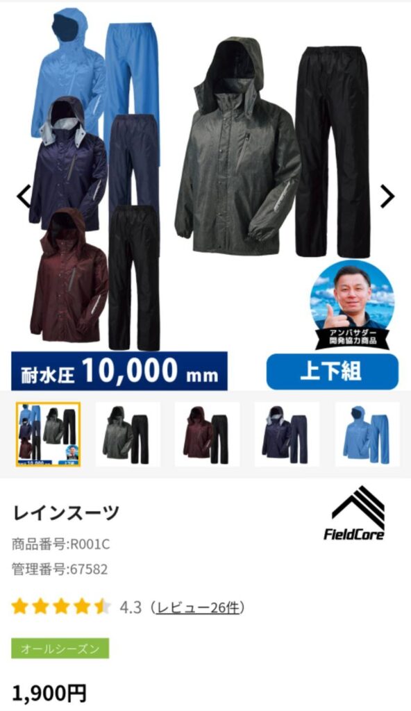 そして、ちょうどレインウェアも探していまして。使っているカッパが、経年劣化なのか、自転車こいでるとお尻から浸みてくるんです。